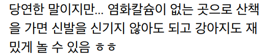 발바닥에 신경이 많아 산책을 하면서 발바닥으로 감촉을 느끼고