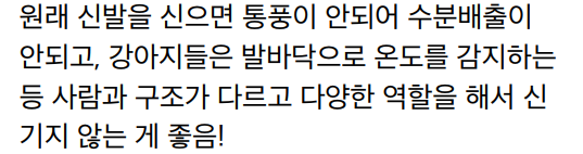 추가적으로 강아지들은 원래 신발 안신기는 것이 강아지한테 더 좋다고함